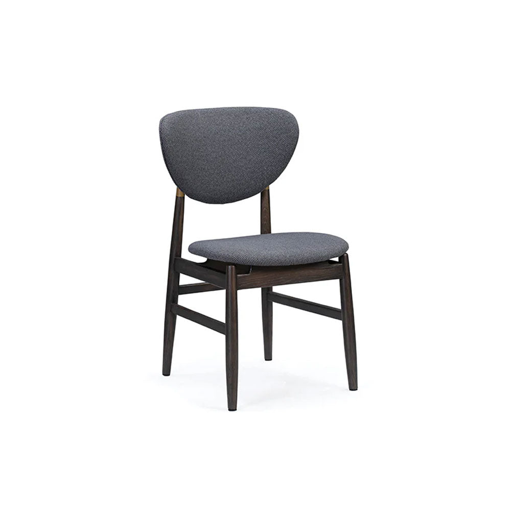 The Linate Side Chair adds a touch of modern sophistication to your dining space. This chair features a smoked solid American oak frame with sleek brass accents on the chair back and backrest. Upholstered in fabric, the seat provides both comfort and style.