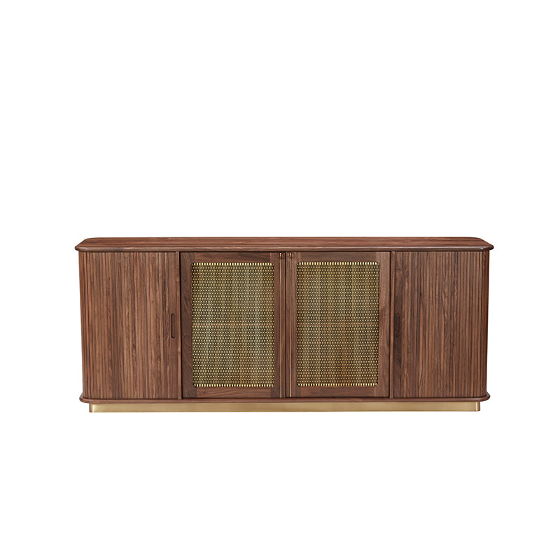 Meticulously crafted from luxurious walnut wood and adorned with retro vintage tambour roll back door detailing, the Axel collection transcends mere furniture; it is a testament to impeccable artistry and enduring sophistication. Enhanced with seamless wire mesh and modern brass finishes, these exquisite pieces promise a lifetime of timeless elegance and unmatched durability.