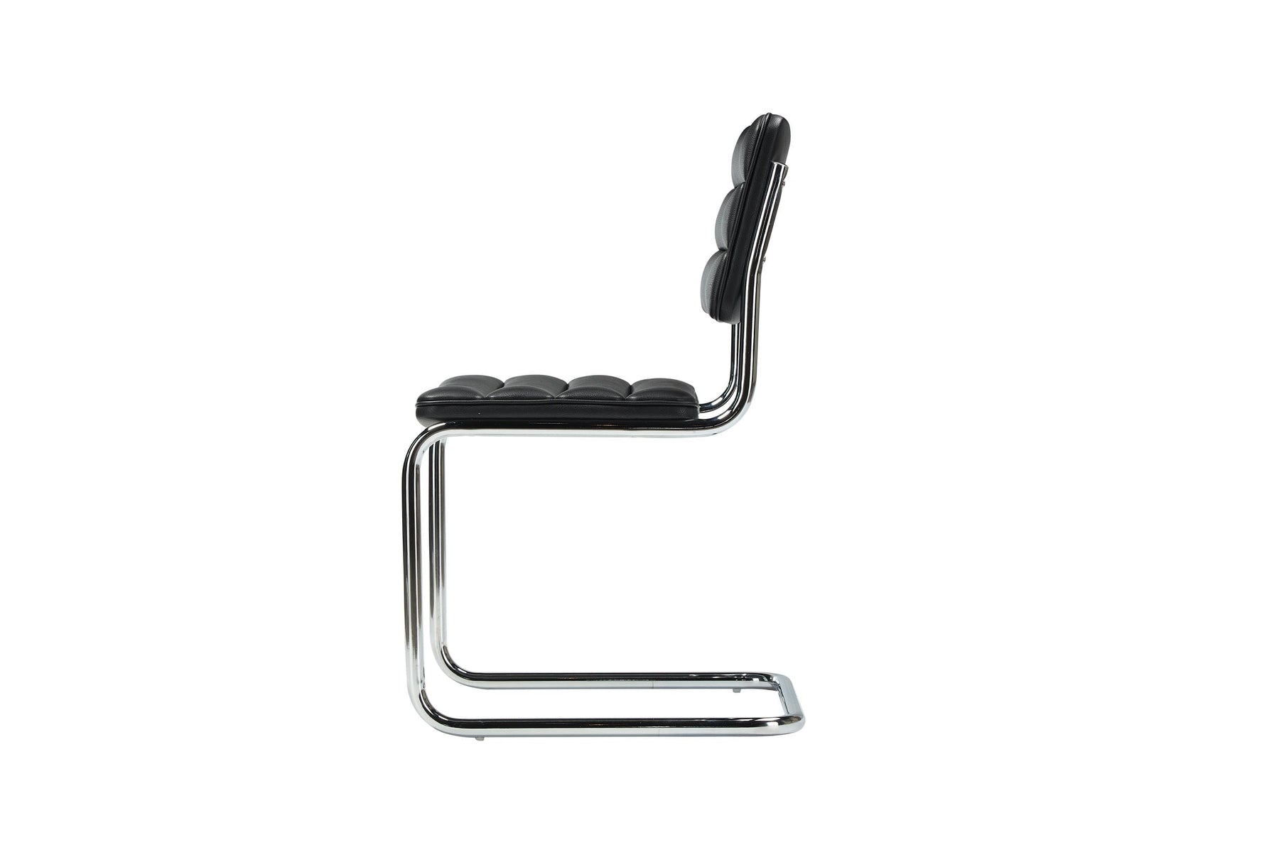 A modern take on the mid-century design icons, the Canta chairs offers a distinctive profile that balances form and function. The Canta Chair features a chrome tubular steel structure with plush upholstery elements that offers unexpected comfort. With a slight flexing or bending effect when one sits, and ease of movement due to its lightweight construction. The Canta chair embodies the harmonious fusion of style, comfort, and versatility.