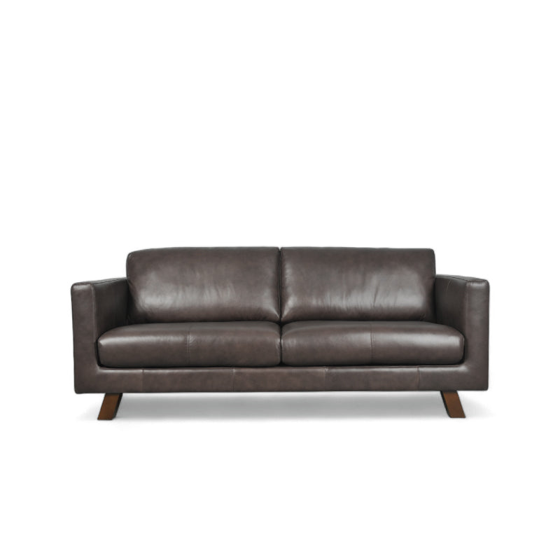 With its clean, straight lines and boxy silhouette, this sofa is a statement piece for any sophisticated living space. The middle stitching on the seats adds a touch of refined detail, while the angled block solid wooden legs provide a sturdy and stylish foundation. Imagine a classic leather couch that evokes the indulgence of a rich, chocolate-layered cake—luxurious, inviting, and utterly irresistible. The Geormani Sofa is not just a piece of furniture; it's an experience in comfort and timeless style.